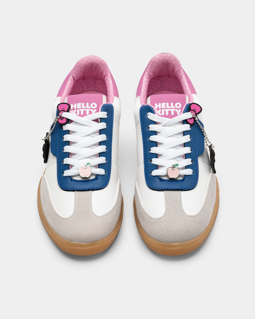 Unos tenis cómodos que te brindan estilo y de una de las mejores marcas del mundo. Color blanco con detalles azules y rosa con personaje lateral. Además de que combinan con todo son súper fáciles de limpiar.