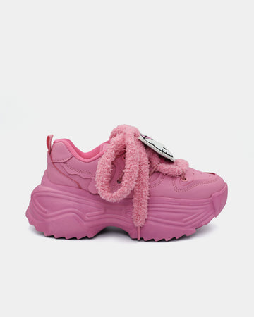Tenis urbanos color rosa pastel, con una silueta chunky muy original. Además cuenta con unas agujetas muy originales y con un pasa cintas acolchonado en figura de Hello Kitty que los hacen super cute.