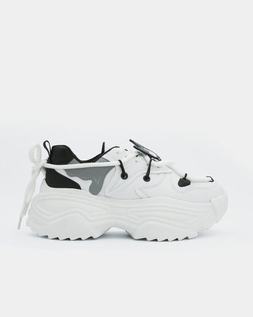 ¡Porque tu lo pediste! Tenis urbanos color blanco, con una silueta chunky muy original. Además cuenta con unas agujetas muy originales y con un pasa cintas acolchonado en figura de Kuromi que los hacen super cute.