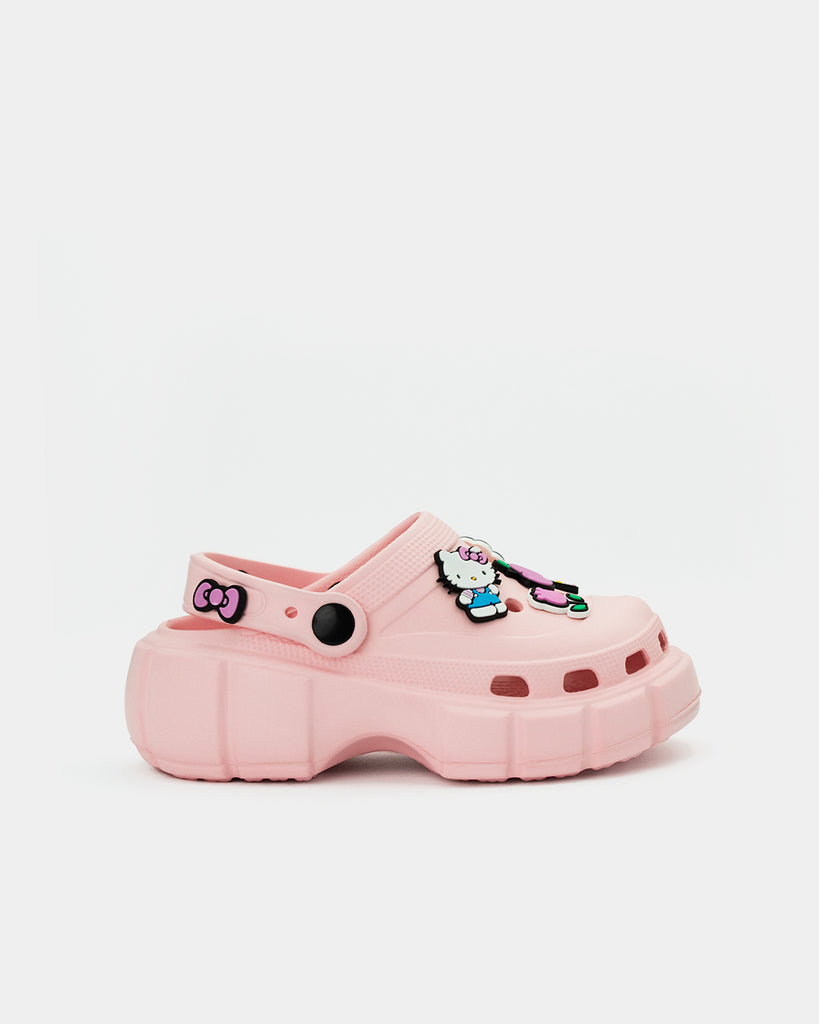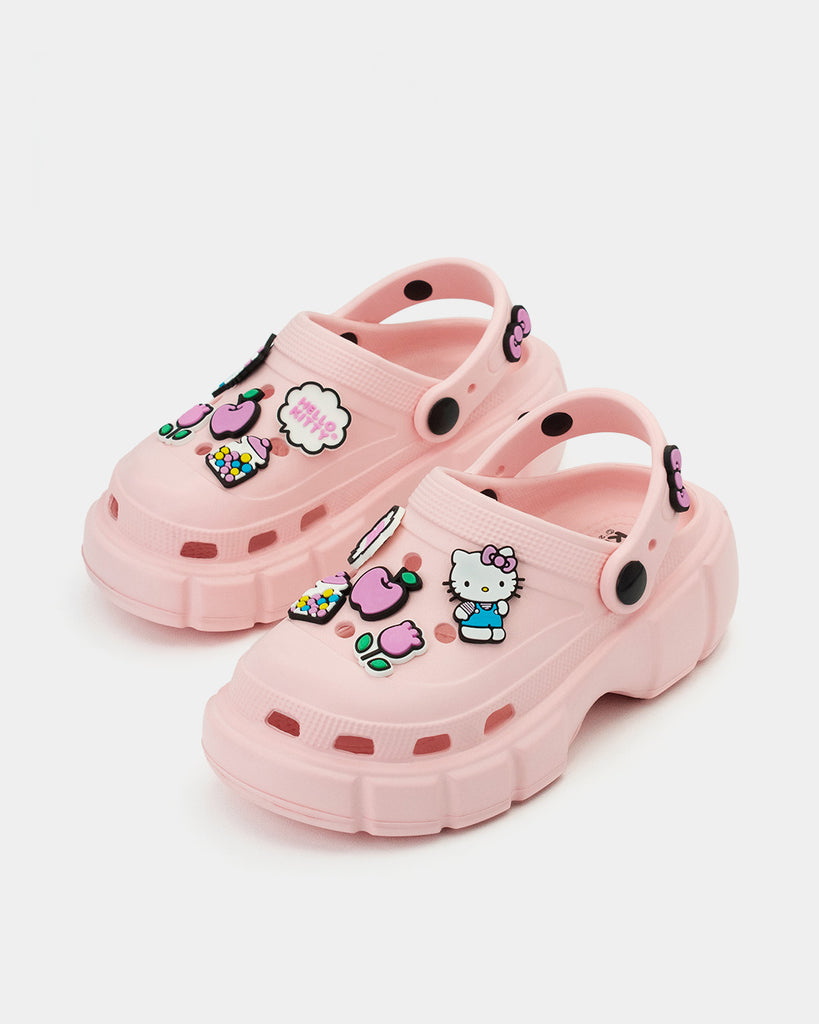 Sandalias de plataforma Hello Kitty, en rosa pastel, ultra ligeras, con pines de plástico divertidos y muy cool, ideal para sentirte cómoda pero verte muy linda al mismos tiempo.