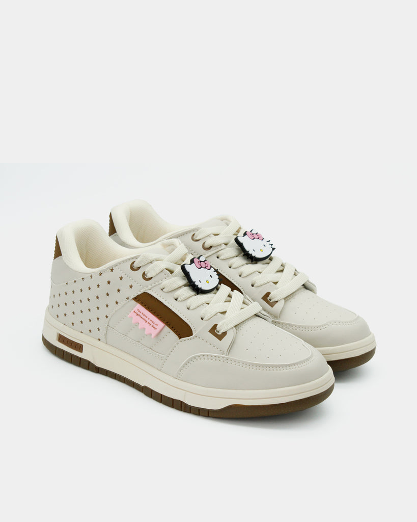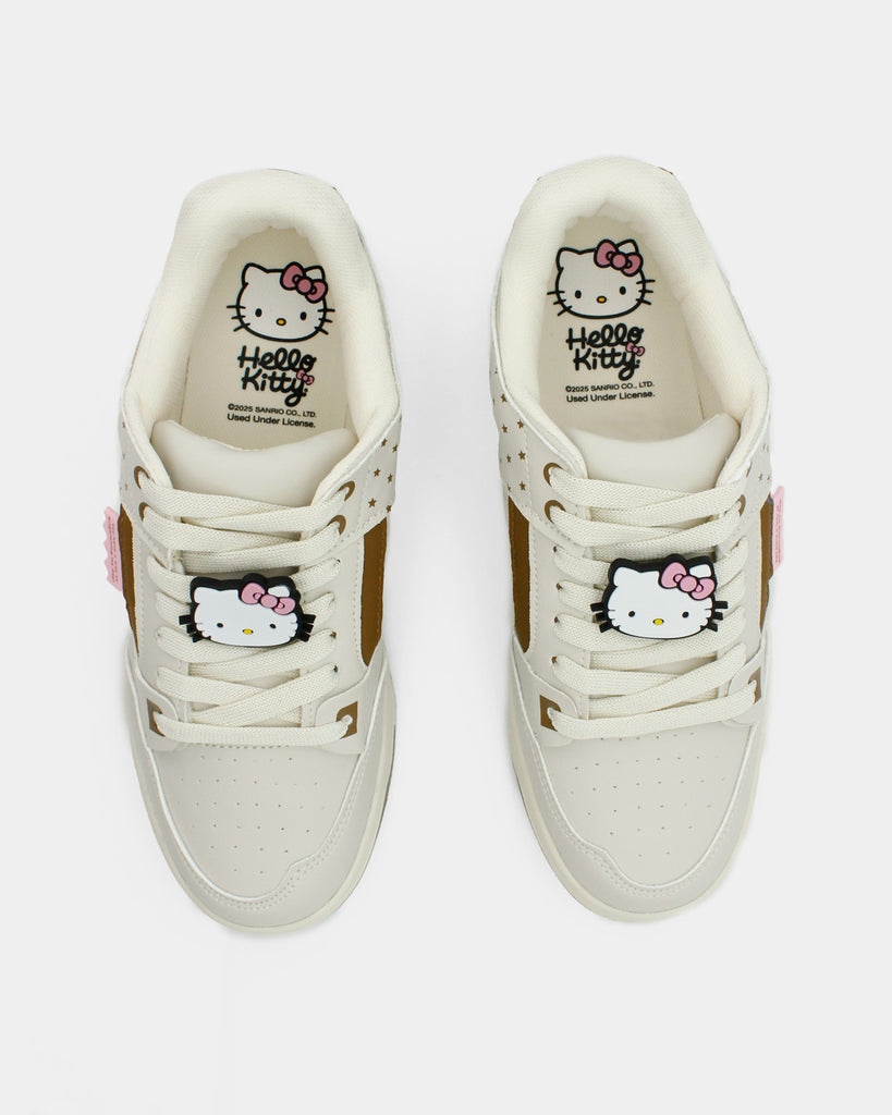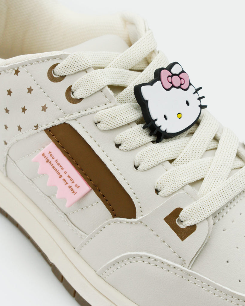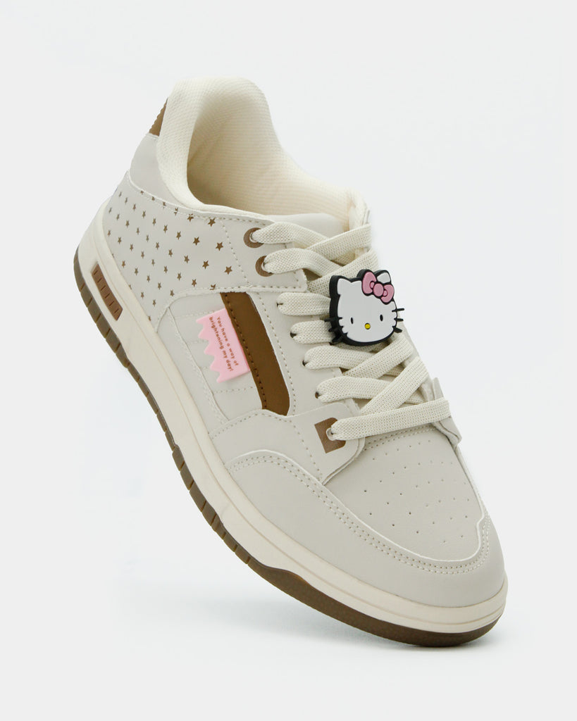 Los sneakers que toda fan de Hello Kitty en el mundo necesita en su clóset, en una silueta súper cool e icónica, son básicos, cómodos, ligeros y muy versátiles en color latte beige con detalles en café que pueden elevar cualquier outfit.