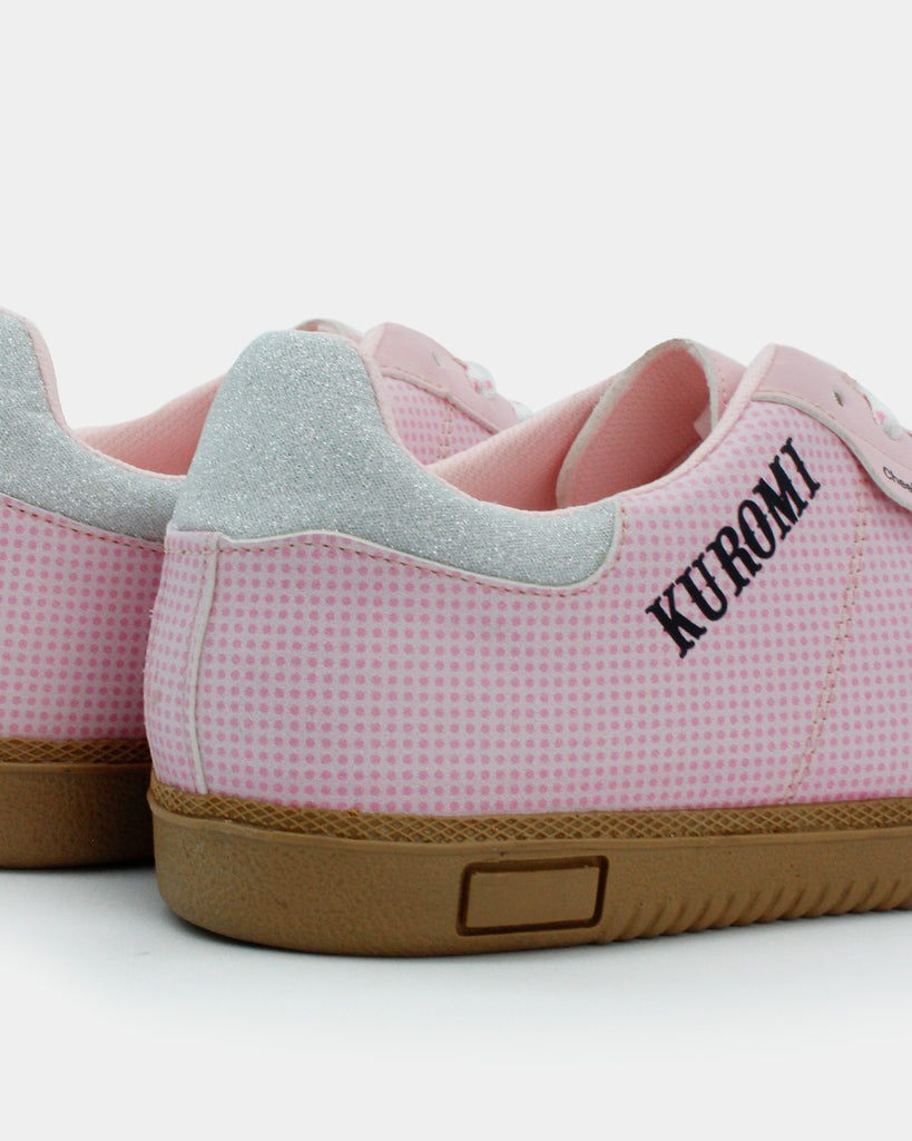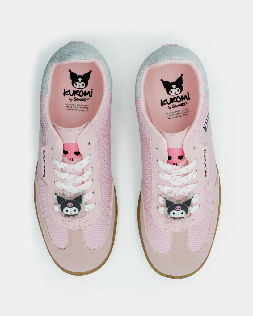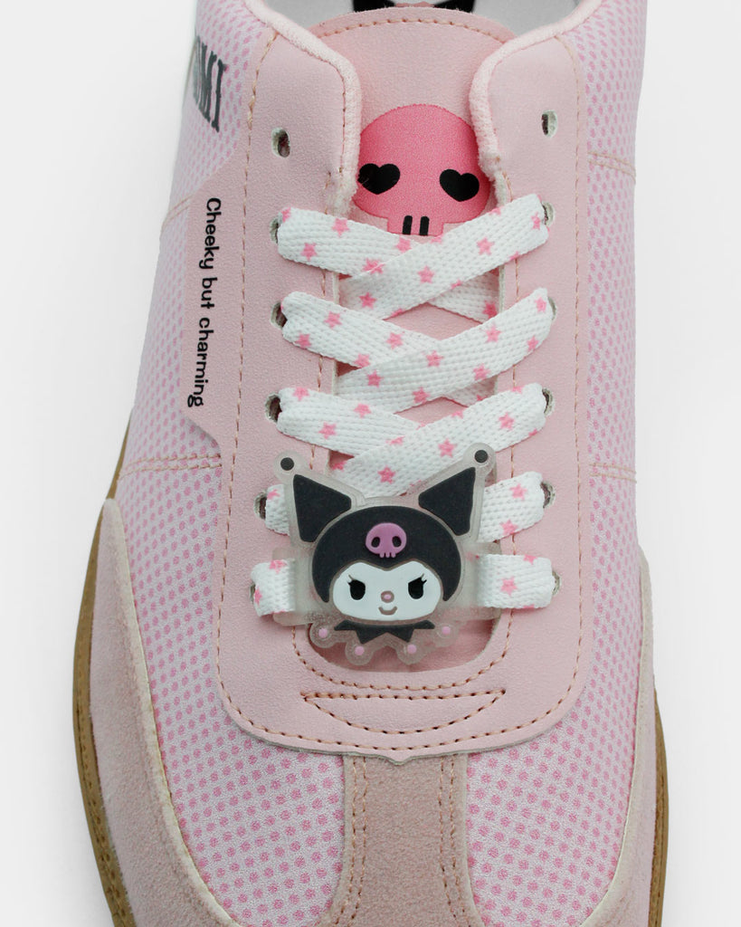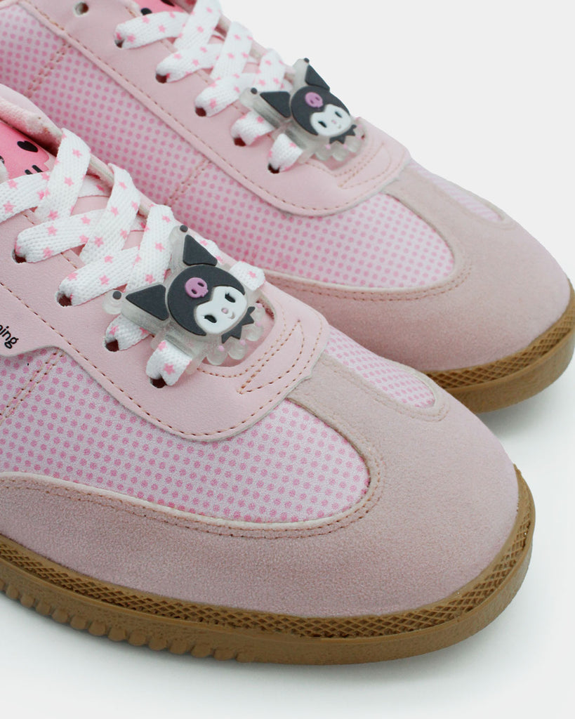 ¡Porque tu lo pediste! Tenis urbanos color rosa pastel, en una de nuestras siluetas más icónicas y combinables. Además cuenta con unas agujetas muy cute y con un pasa cintas de plástico en figura de Kuromi que los hacen irresistibles.
