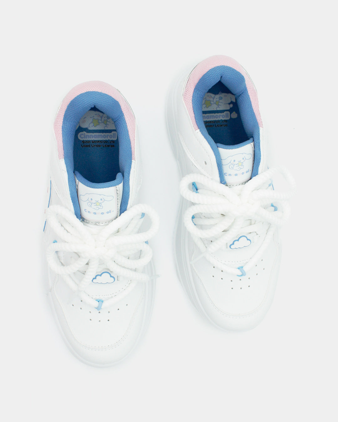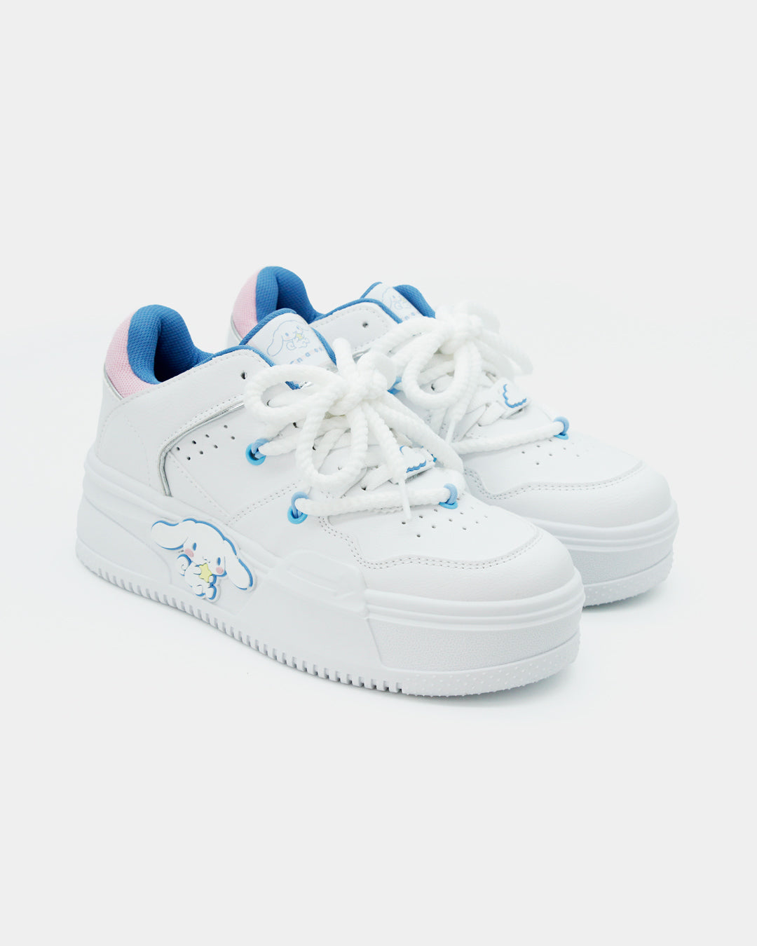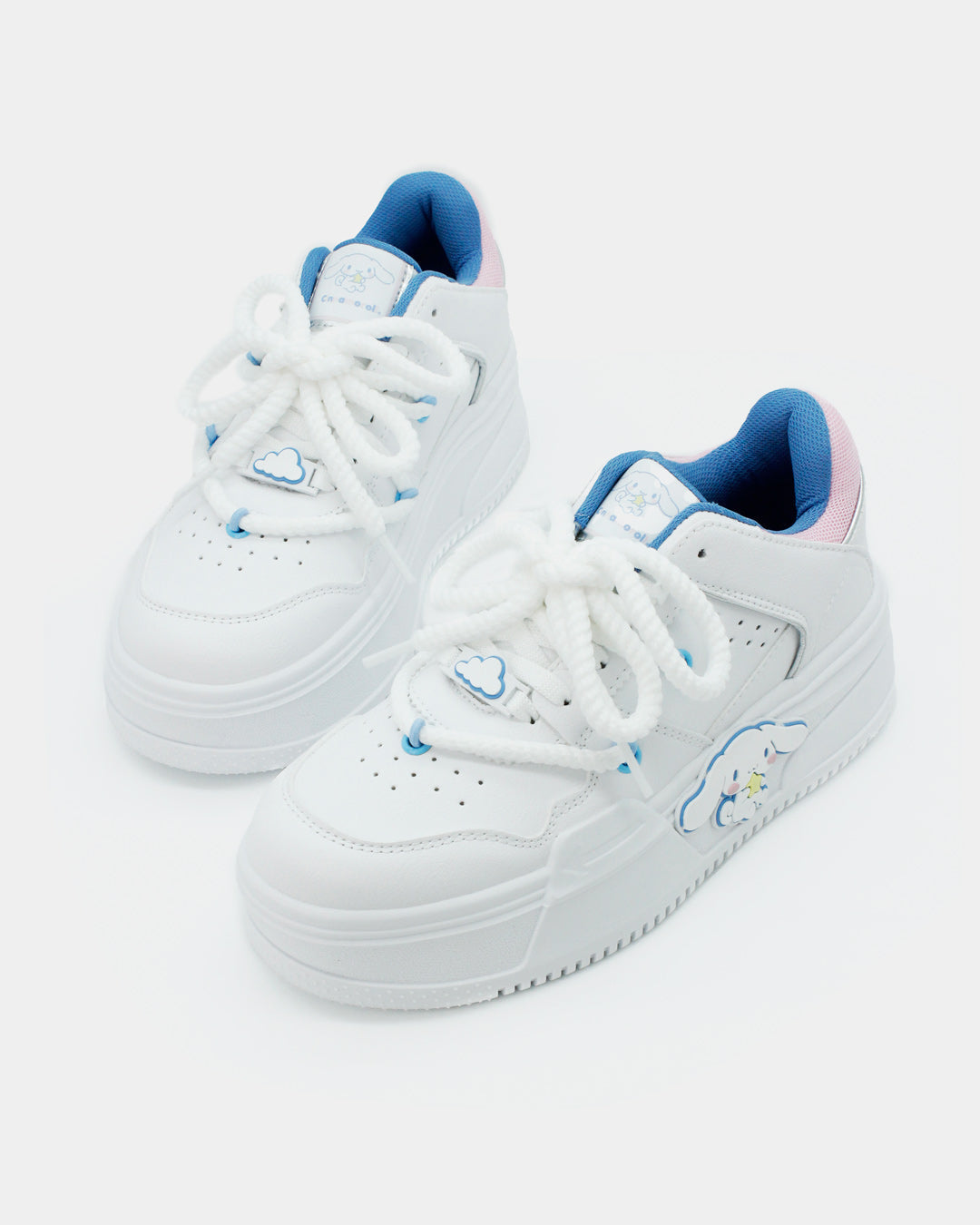 Los sneakers que toda fan de Cinnamonroll en el mundo necesita en su clóset, en una silueta súper cool e icónica, son básicos, cómodos, ligeros y muy versátiles en color blanco con detalles en azul y rosa pastel que combinan con todo y pueden elevar cualquier outfit.