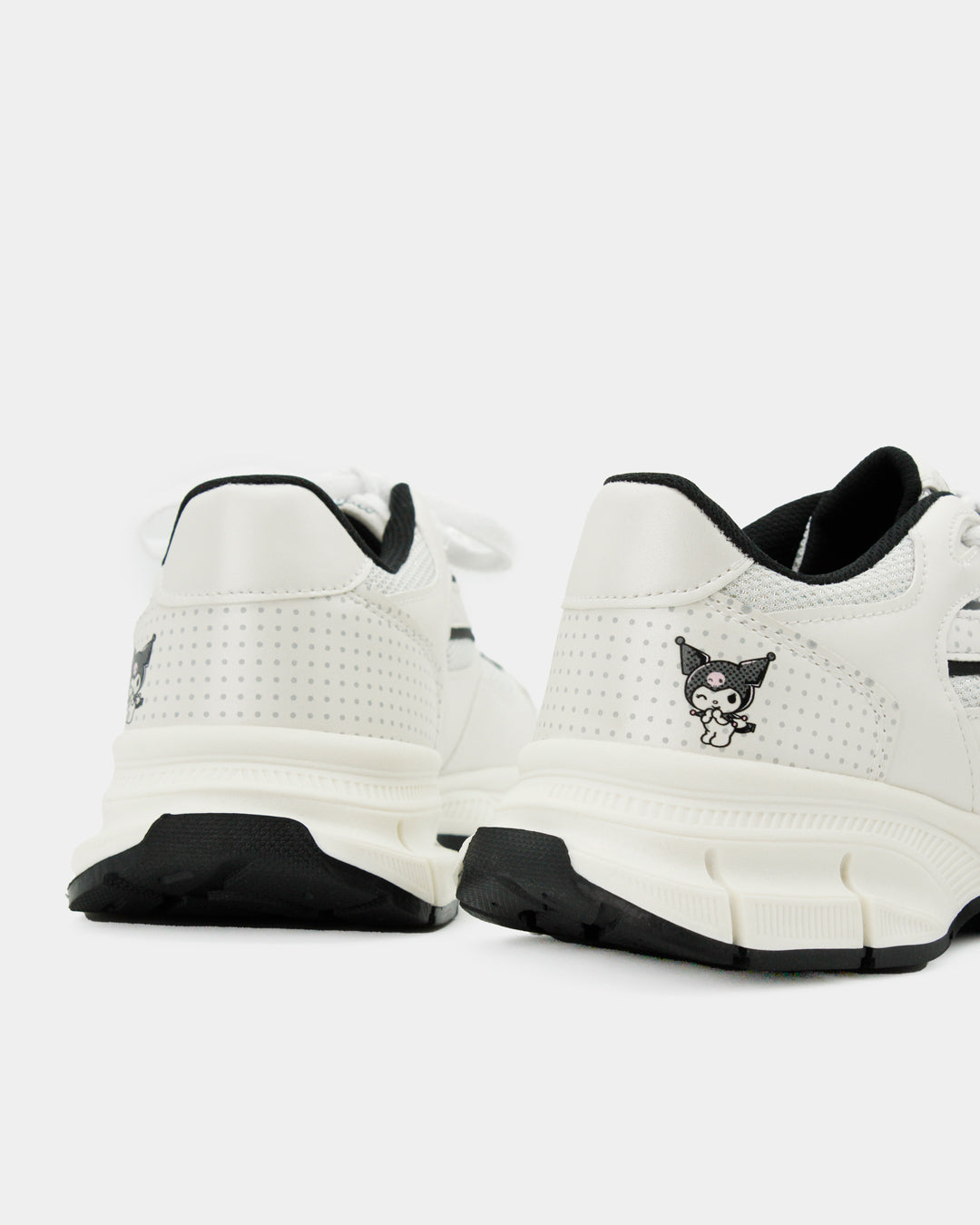 Los sneakers que toda fan de Kuromi en el mundo necesita en su clóset, en una silueta súper cool e icónica, son básicos, cómodos, ligeros y muy versátiles en colores blanco, negro y plateado que combinan con todo y pueden elevar cualquier outfit.