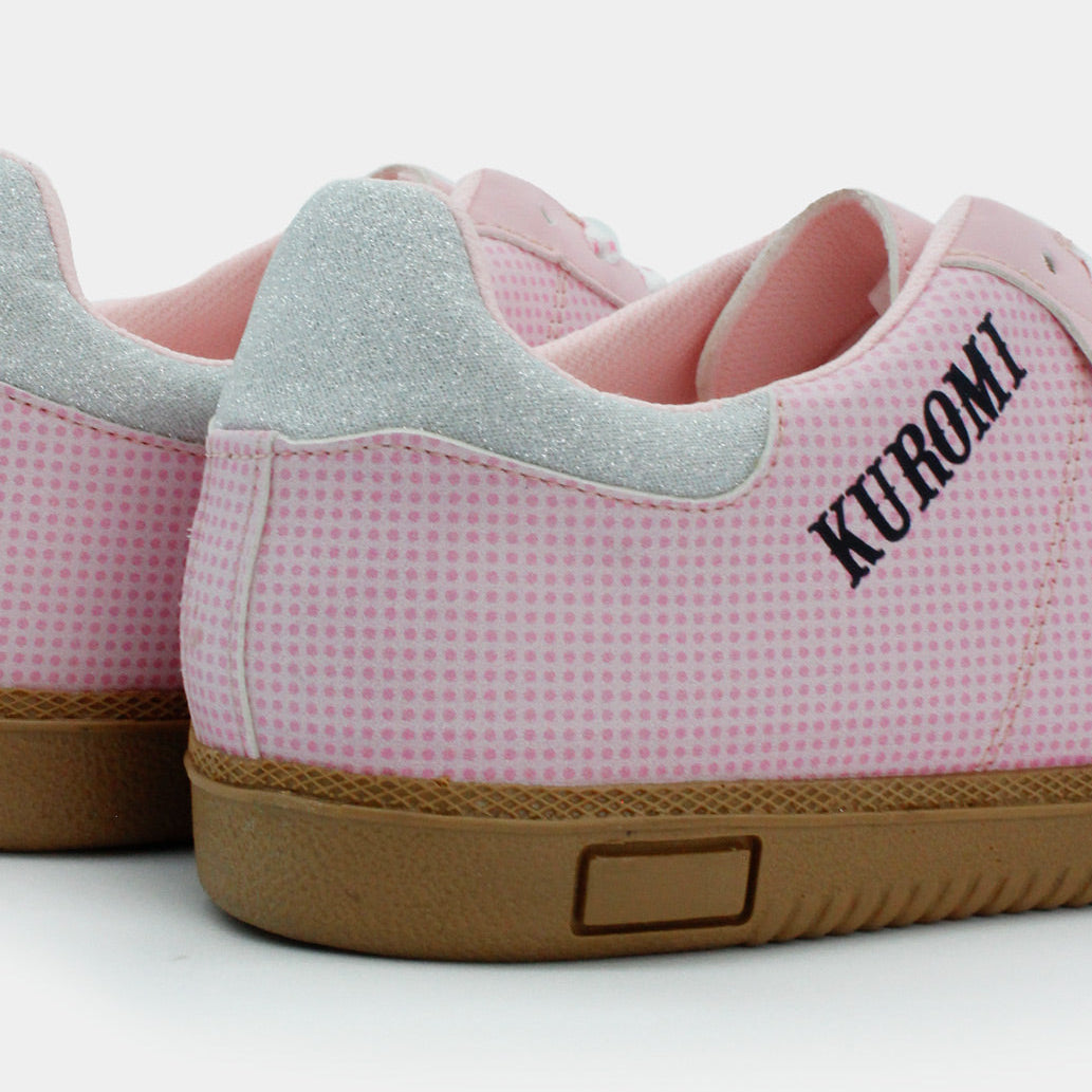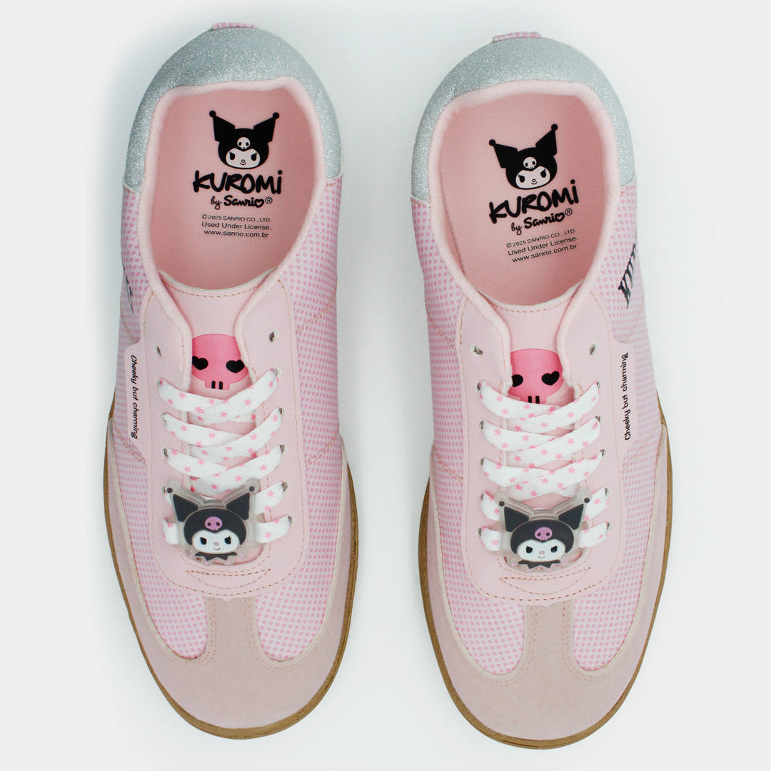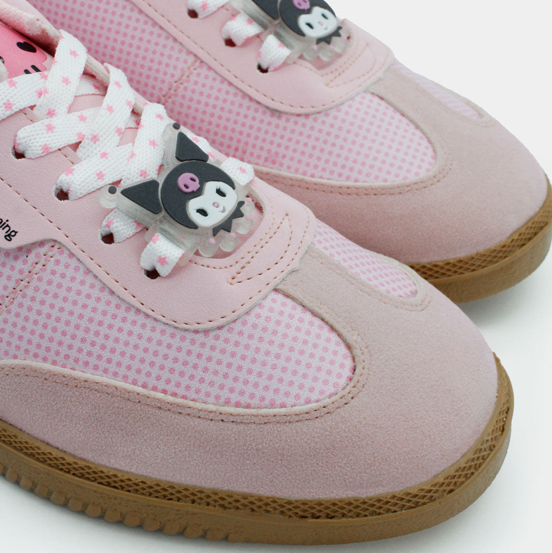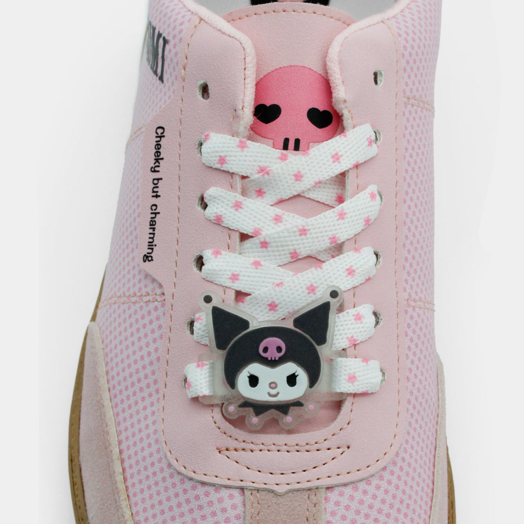 ¡Porque tu lo pediste! Tenis urbanos color rosa pastel, en una de nuestras siluetas más icónicas y combinables. Además cuenta con unas agujetas muy cute y con un pasa cintas de plástico en figura de Kuromi que los hacen irresistibles.